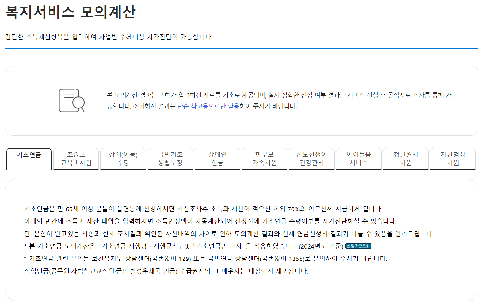 - 결과 확인: 입력한 정보를 바탕으로 계산된 예상 수령액과 함께, 수급 자격 여부를 확인할 수 있습니다.