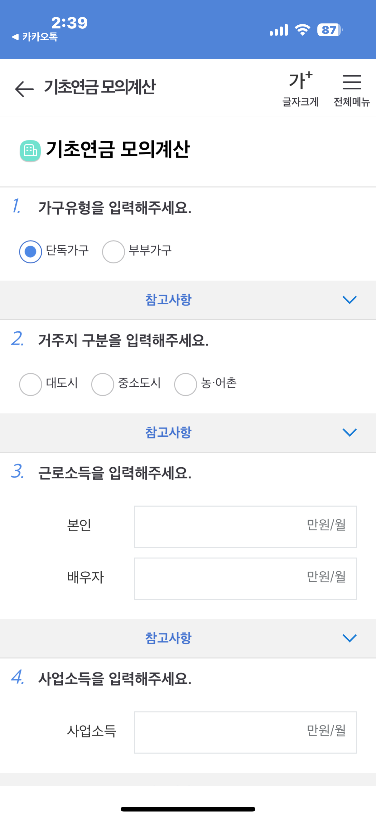 2. 복지로 홈페이지에서 기초연금 모의계산